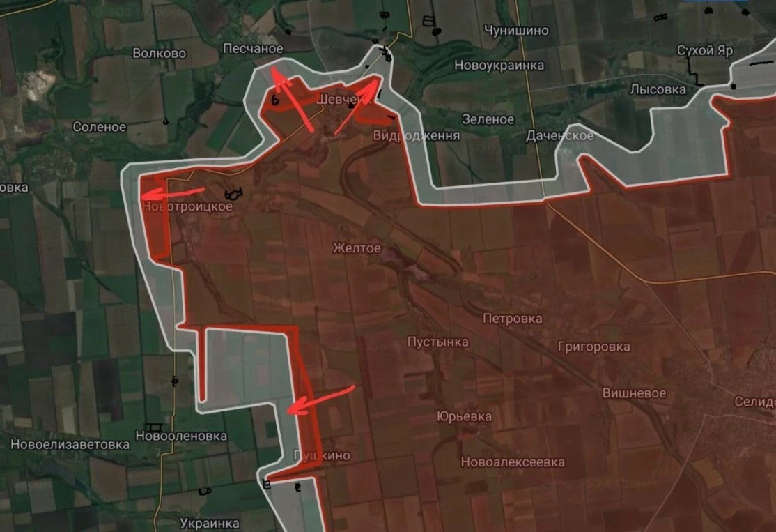 На Покровском направлении российские войска продвинулись в Шевченко и в направлении Песчаное. Под контроль ВС РФ перешли Новотроицкое и Пушкино.