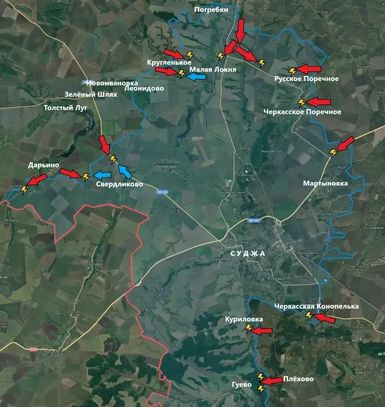 Враг не только пытается удерживать позиции, но и проводит свои контратаки. Инициатива на нашей стороне, но бои идут кровопролитные и не без потерь. Враг продолжает отправлять свои резервы и западную военную технику в Курскую область. Часть уничтожается ещё по пути. В основном - ФАБами с УМПК по ПВД в Сумской области Украины. Иногда задействуются и «Искандеры». Но очевидно, что для киевского режима, который опирается исключительно на политические мотивы, Курское направление - самое приоритетное, несмотря на проблемы ВСУ на других направлениях.