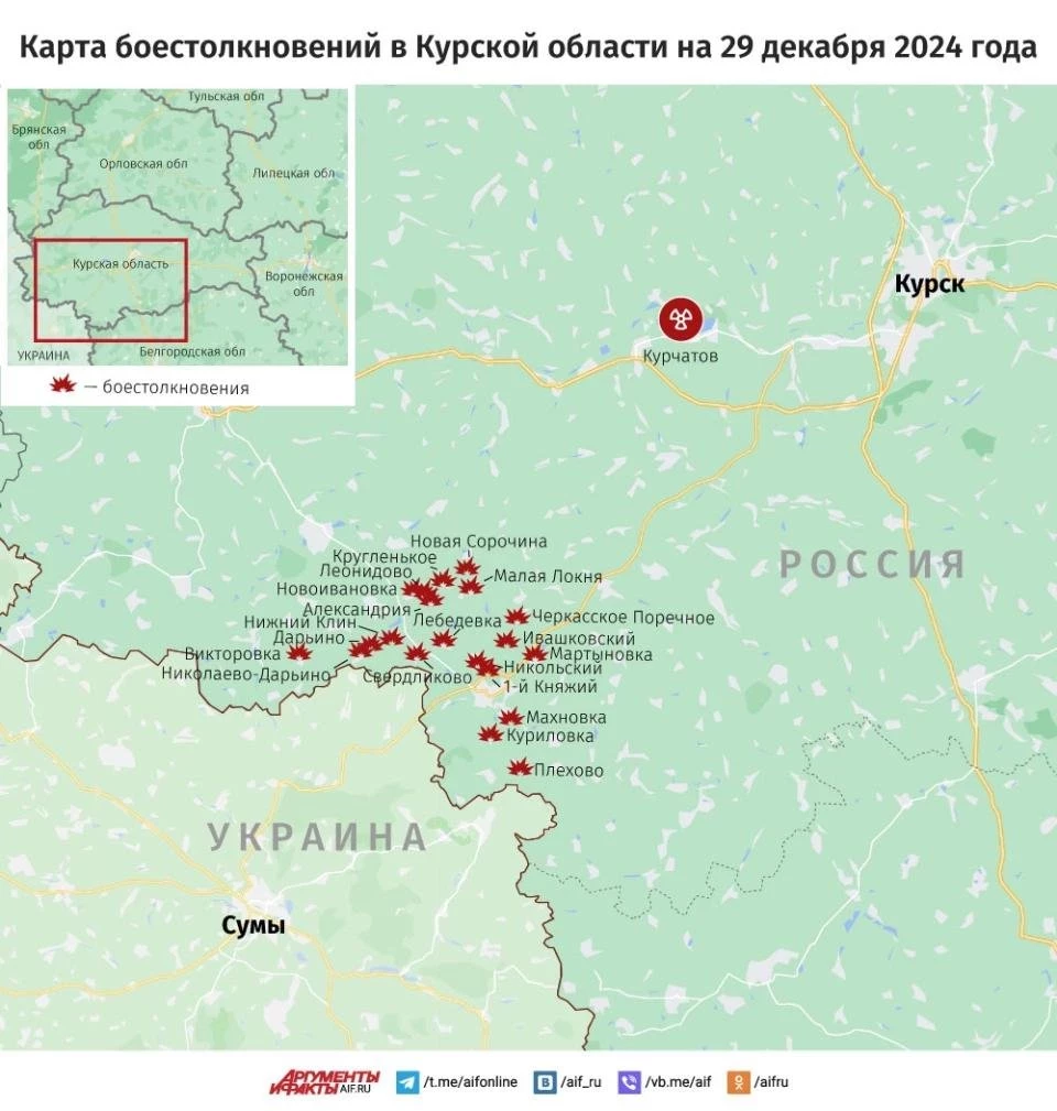 ВС РФ штурмуют позиции ВСУ в районе Новоивановка-Кругленькое в Курской области: карта боёв на сегодня, 29 декабря 2024