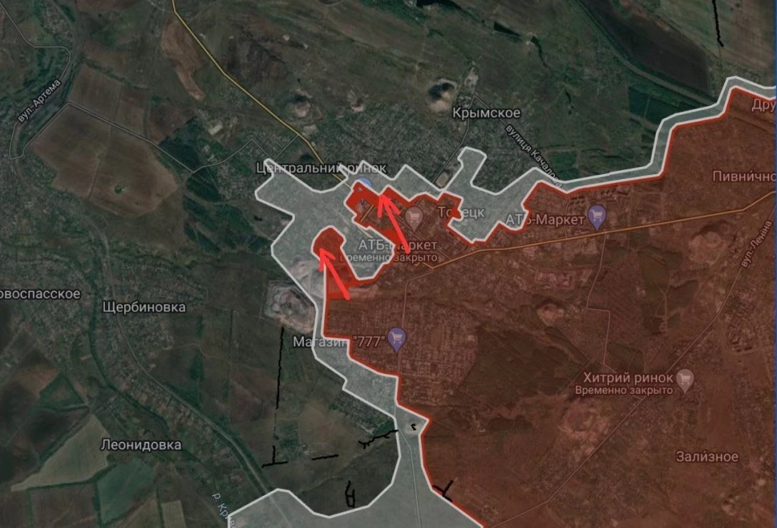 Торецкое направление. Торецке ВС РФ заняли всю южную часть горола и продолжают штурмовые мероприятия. За противником менее 15% территории городской черты.