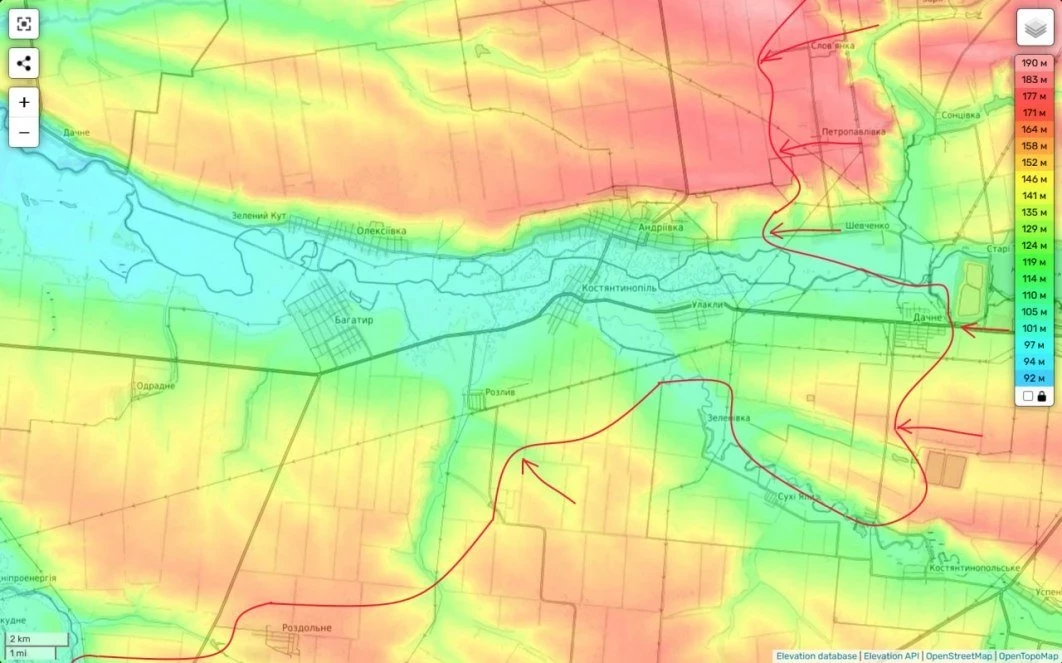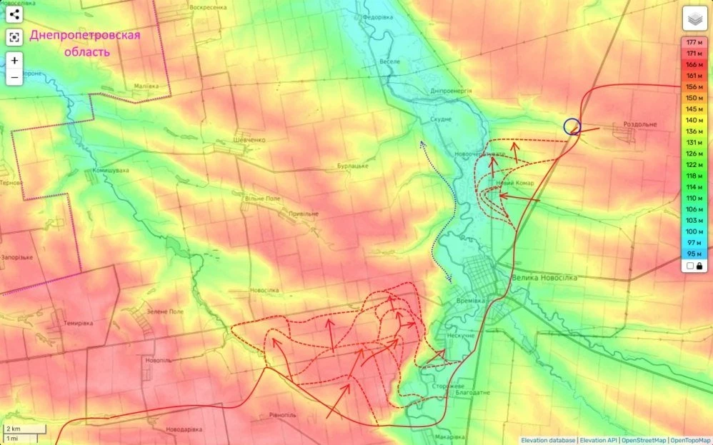 Но самую главную угрозу противнику на Кураховском направлении представляют наши успехи не южнее, а севернее реки Волчья, где накануне была полностью освобождена Славянка (а еще ранее Петропавловка и Шевченко). И теперь здесь, прорвав оборону противника на естественных рубежах, мы пытаемся с северо-востока (по холмам) выйти к Андреевке. Здесь оборону со стороны противника держит 590я бригада, которая, упорно сопротивляясь, постепенно откатывается на запад.