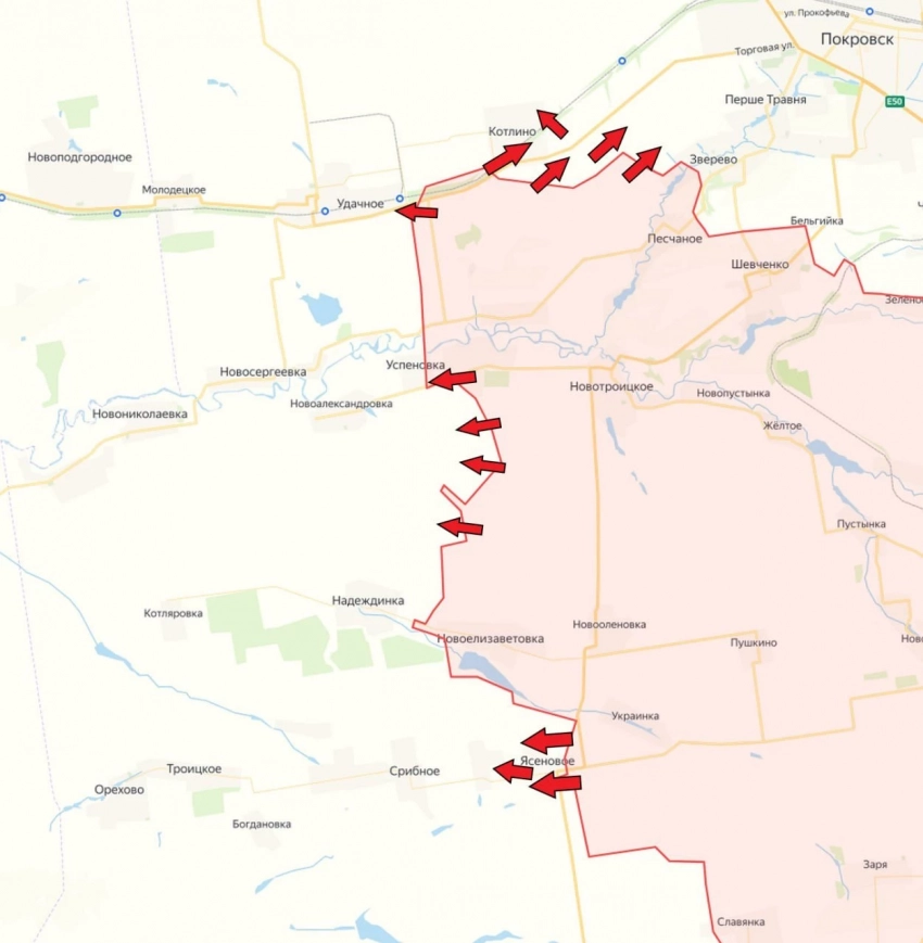 Новопавловское направление (чуть южнее Покровского направления). Подразделения ВС РФ взяли под контроль Ясеневое и продвигаются дальше на запад - бои идут у Новоандреевки.