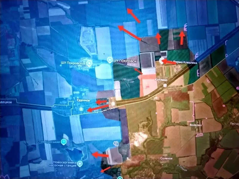 Фактически наступление ВС РФ здесь уже не локальное, как в случае с Котлино, взятие которого позволило перерезать одну из дорог в Красноармейск с северо-запада и железную дорогу из Днепропетровска, идет выравнивание и расширение линии наступления.