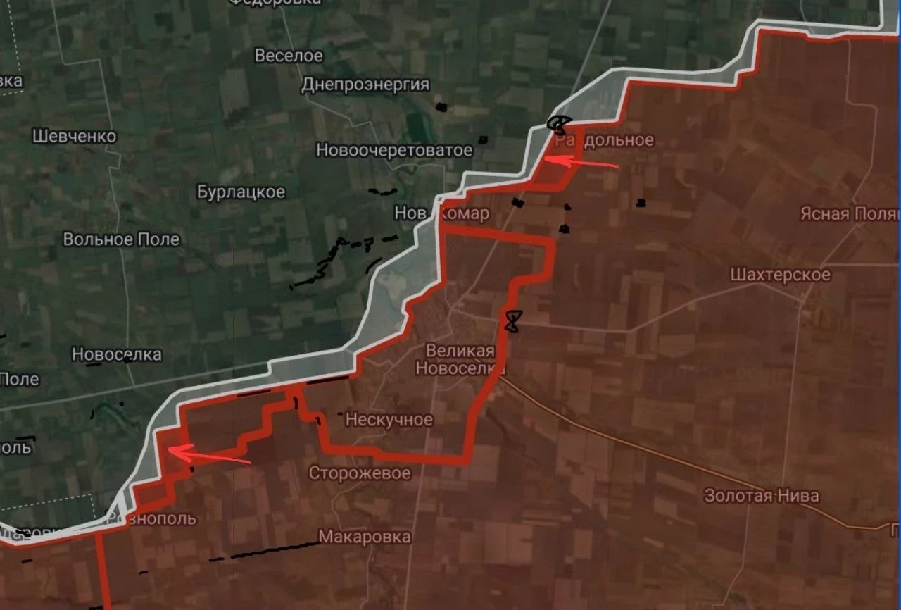 На Запорожском участке ВС РФ расширили зону контроля вдоль трассы на Гуляйполе. Артиллерией поражен пункт дислокации ВСУ в здании бывшей тюрьмы в Малой Токмачке. Наши БПЛА бьют по району Преображенки, что на северо-востоке от Орехова - ближайшего узла обороны ВСУ.
