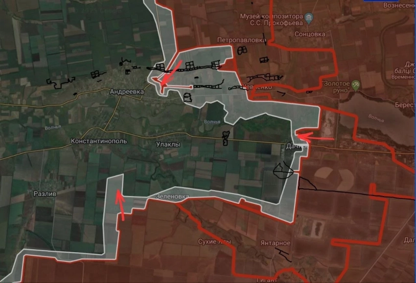 На Константинопольском направлении ВС РФ имеют тактические успехи в Андреевке. Продолжаются встречные бои в Дачном и на подступах к Константинополю, сообщает Telegram-канал "БелВПО".