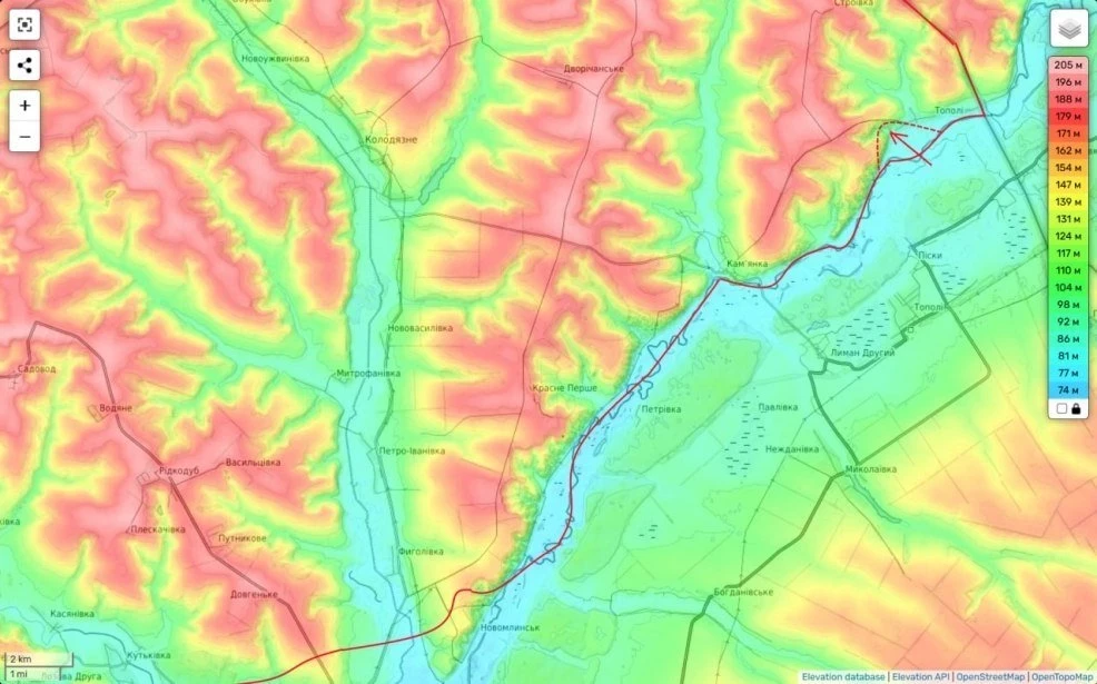 Вчера ресурсы противника сообщили о том, что наши части еще в одном месте переправились через реку (возле самой границы в районе н.п. Тополи) и заняли одну из высот на западном берегу.