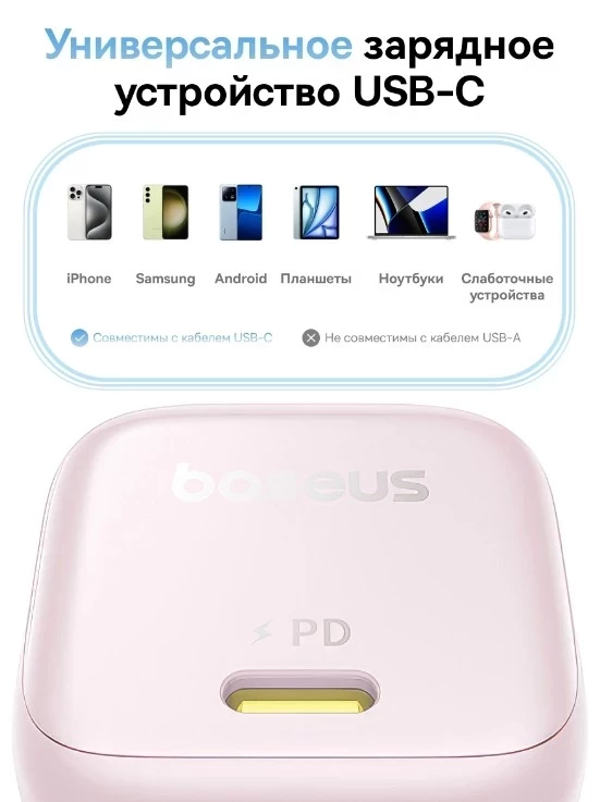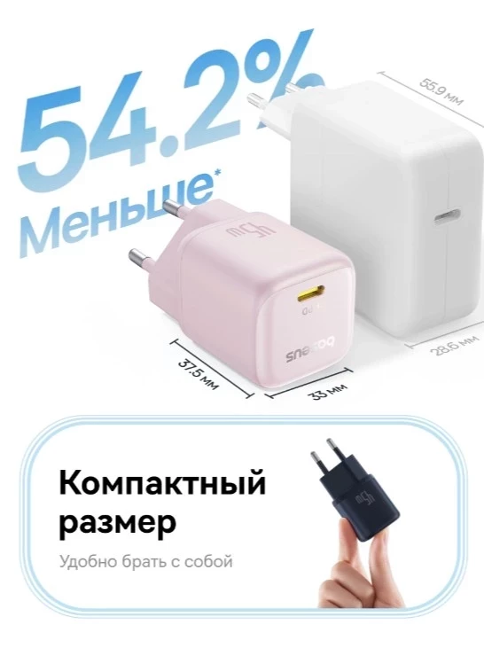 Линейка PicoGo выделяется минималистичным дизайном и небольшими размерами, что делает их идеальными спутниками для дома, офиса или путешествий. Например, зарядное устройство Baseus PicoGo GaN USB-C Charger 45W на 54,2% меньше стандартных зарядных устройств аналогичной мощности, что позволяет легко носить его с собой.