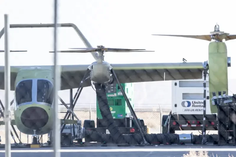 В аэропорту Мохаве в Калифорнии был замечен ранее неизвестный летательный аппарат с вертикальным взлётом и посадкой (VTOL), сочетающий в себе наклонные и неподвижные роторы.