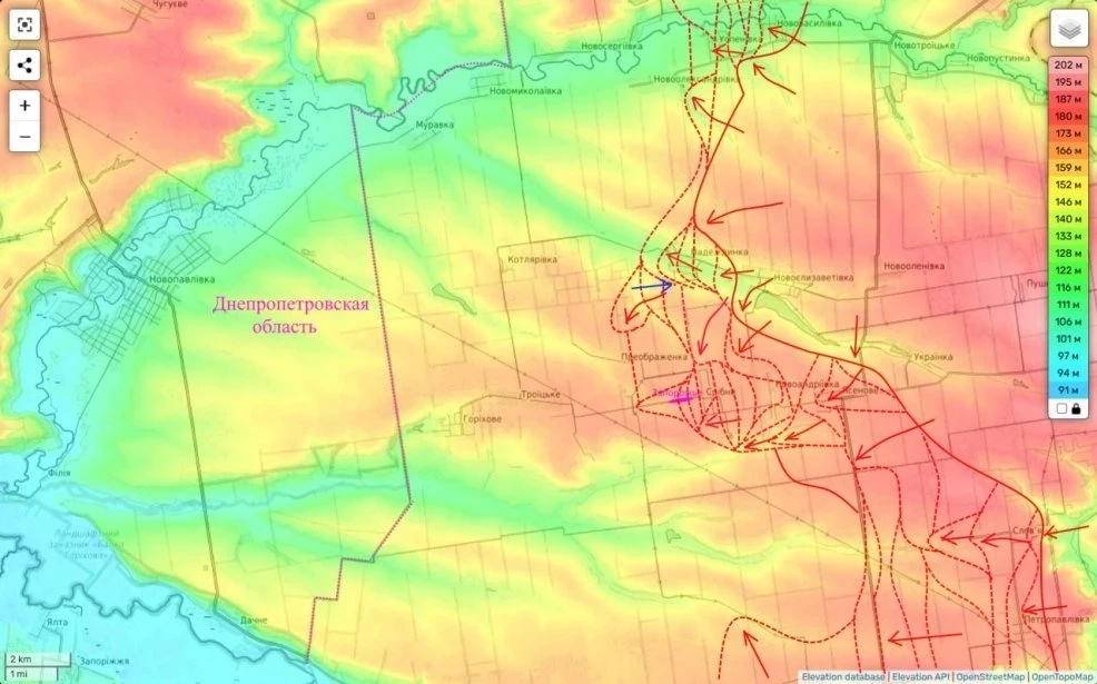 А ещё продолжаются упорные бои в районе Запорожья - Преображенка и южнее.