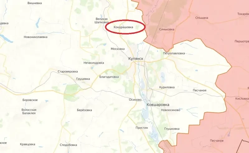 ВС РФ зашли на окраину Кондрашовки к северу от Купянска в Харьковской области