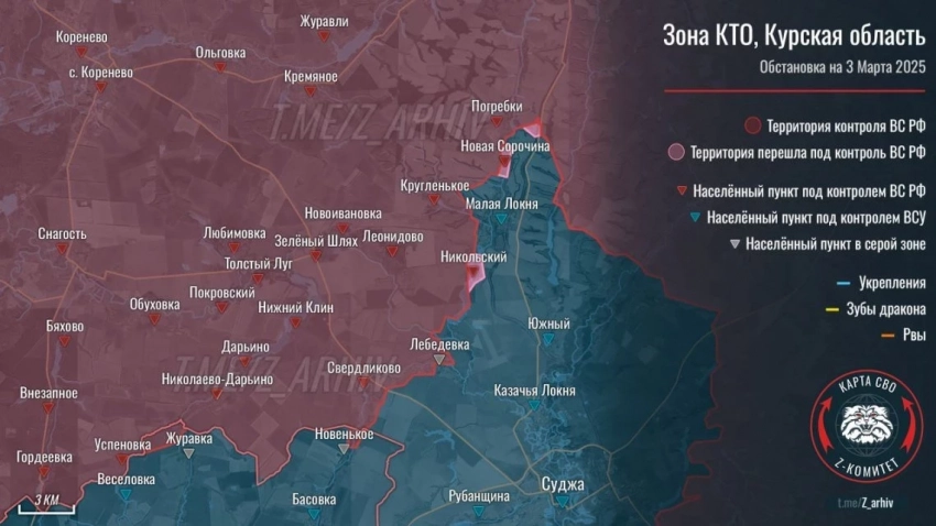 Новая карта боевых действий в Курской области: актуальная информация на 04.03.2025