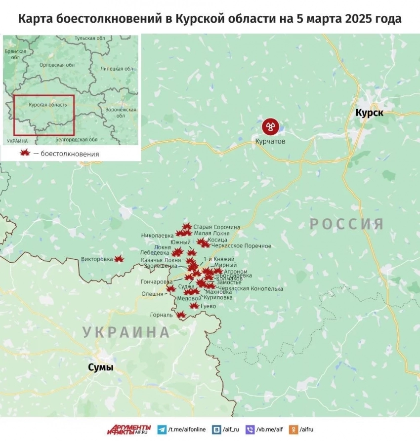 Карта боевых действий в Курской области от 05.03.2025
