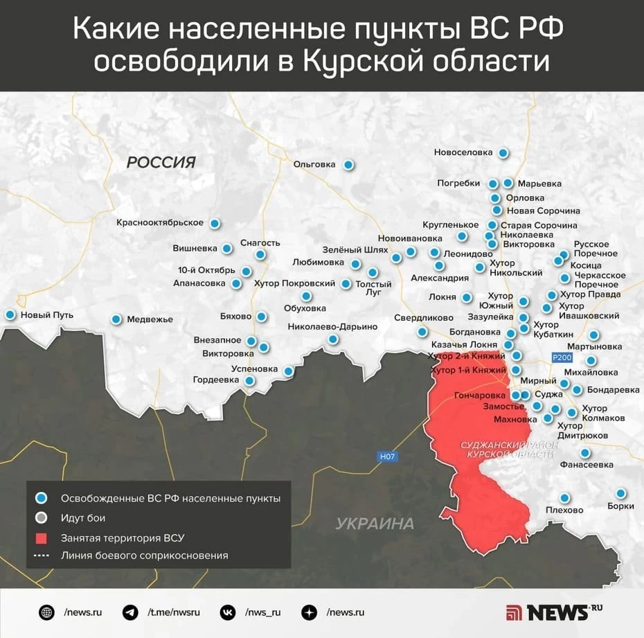 Источник утверждает, что боестолкновения также продолжаются в лесных массивах на юге и юго-западе суджанского приграничья, где морпехи и десантники ВС РФ зачищают остатки подразделений ВСУ, перебрасываемых командованием для эвакуации техники и сдерживания российского наступления.