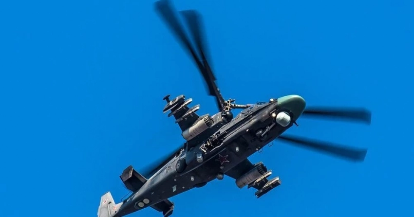 По информации военного ведомства, экипаж Ка-52М нанес точечный удар ракетами по заранее разведанным целям.