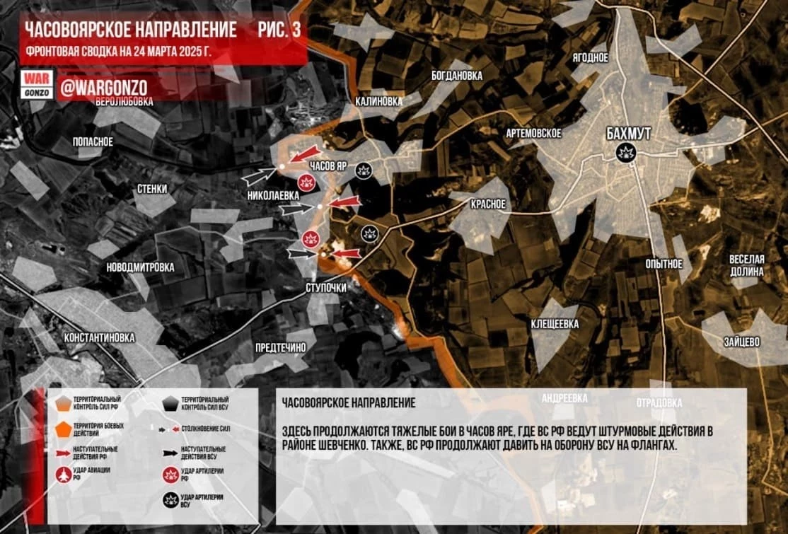 Карта боевых действий в зоне СВО на Украине по данным на 24 марта 2025