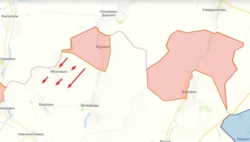 Ранее сообщалось, что под контроль ВС РФ на территории противника перешли приграничные сёла Басовка и Журавка. Теперь ряд российских околовоенных ТГ-каналов публикуют информацию о взятии нашими военными под контроль и села Веселовка, расположенного на юго-западе от Журавки.