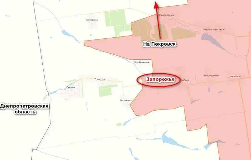 Подразделения группировки войск «Центр», наступая под Покровском в сторону Днепропетровской области, освободили село Запорожье. Данный населенный пункт находится южнее Покровска между реками Волчья и Соленая. От села до границы Днепропетровской области меньше семи километров. О боях за Запорожье ранее не сообщалось, в феврале село упоминалось в контексте, что туда отступили выбитые из соседнего Срибного украинские формирования. Попадание села в сводку говорит о том, что противника отбросили дальше и на сегодняшний день ему ничего не угрожает.