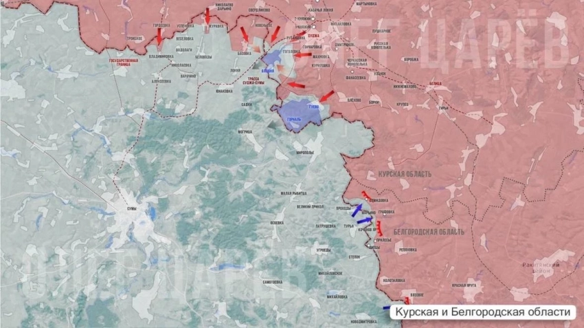 В свою очередь Telegram-канал "Северный ветер" информирует о том, что на Сумском направлении Северяне продолжают освобождение Гуево и Басовки. В ближайшее время стоит ожидать начало боев за хутор Олешня.