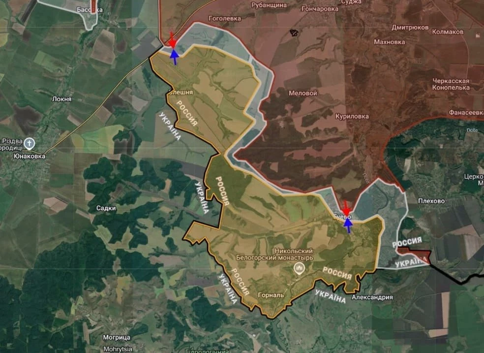 Telegram-канал "Северный ветер" пишет, что на Сумском направлении ВС РФ продолжают освобождение Гуево и Басовки.
