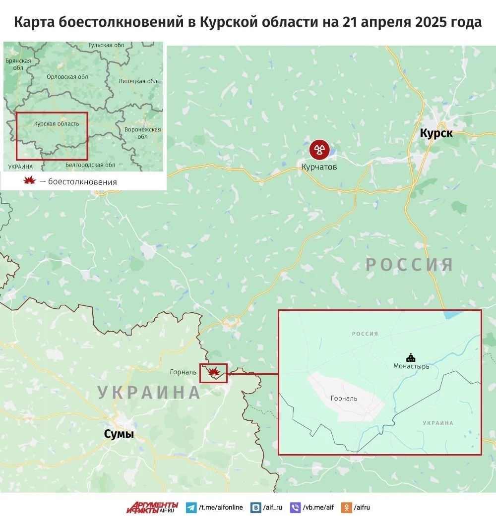 В Курской области идут интенсивные бои в окрестностях Горналя: карта боевых действий по состоянию на 21.04.2025