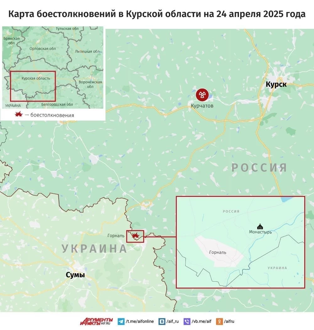Свежая карта боевых действий в Курской области. Данные на сегодняшний день, 24.04.2025