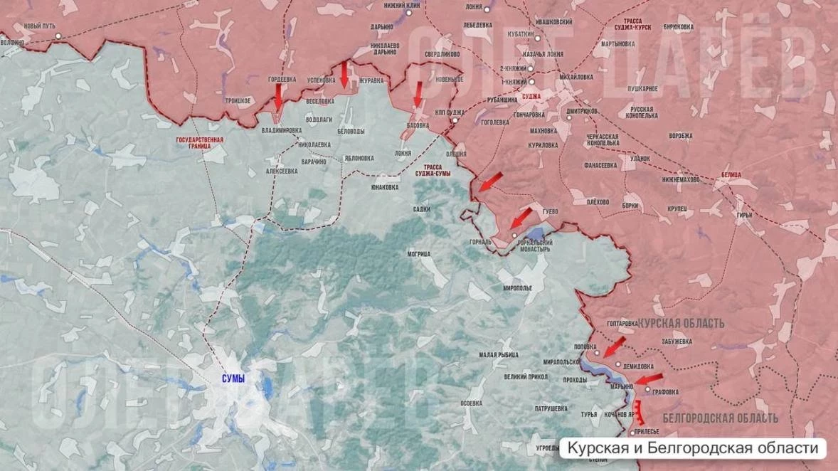 В Горнали ВС РФ заканчивают зачистку последней улицы, где ещё отмечалось присутствие ВСУ. С высот у селу наши контролируют маршруты ВСУ в ближнем Сумском приграничье. За сутки дронами поражена штурмовая группа ВСУ, направлявшуюся к Краснояружскому участку Белгородской области, сообщает Олег Царёв в своём Telegram-канале.