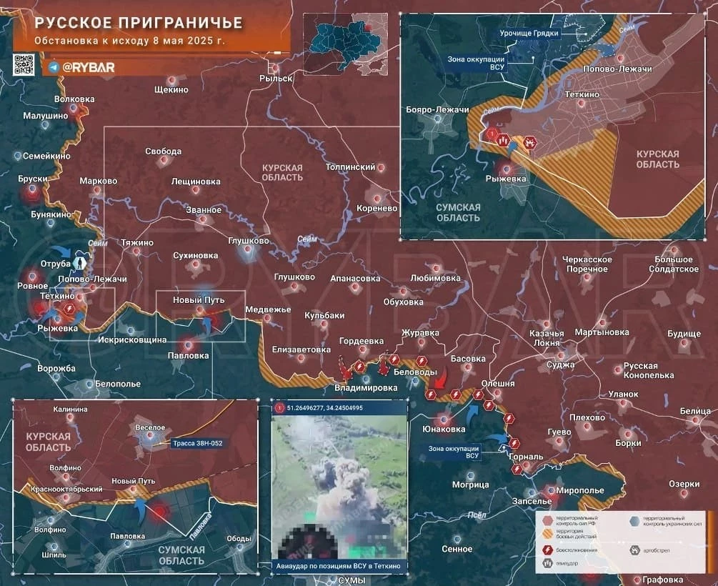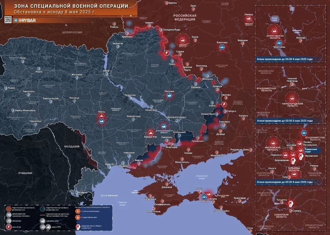 Новая карта боевых действий в зоне СВО на Украине на 9 мая 2025