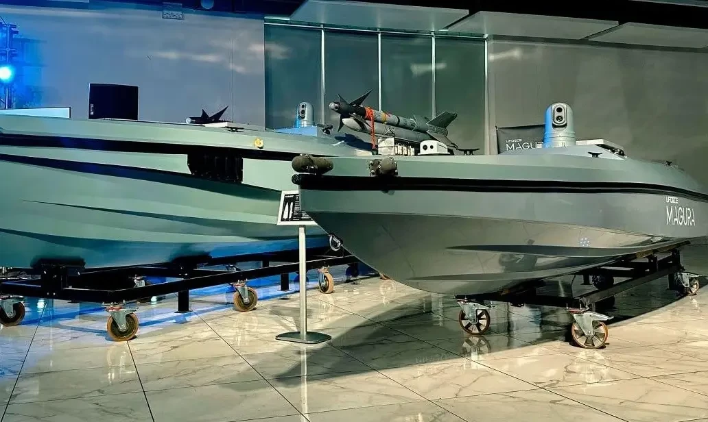 В частности, Буданов* представил ударный безэкипажный катер Magura V5, мультифункциональную платформу Magura V6P и оснащенный американскими ракетами AIM-9 Sidewinder дрон Magura V7, как утверждается, способный сбивать даже самолеты. Кроме того, продемонстрирован БЭК Мagura V7 с пулеметом, предназначенный для огневой поддержки на воде. Длина V7 составляет около восьми метров, тогда как V5 — 5,5 метров. Кроме того, V7 отличается от предыдущей модели формой носовой части и отсутствием в ней ударно-взрывной составляющей.