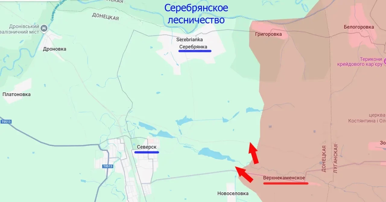 Одновременно с освобождением Верхнекаменского российские Вооружённые силы овладели территорией площадью около 6 квадратных километров к северу от этого населённого пункта. Это позволяет продвигаться вдоль реки Каменка как по направлению к Северску, так и, например, на север – для блокирования группировки противника, засевшей в Серебрянском лесничестве.