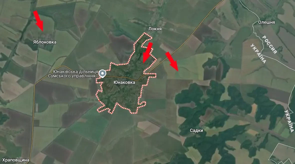 На текущий момент украинская армия потеряла контроль над восточной частью Юнаковки – на левом берегу реки Локня.