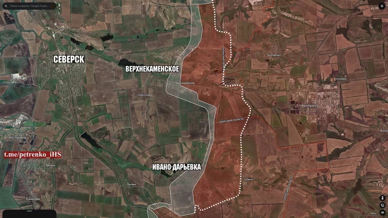 На северском направлении (ДНР) российские войска продвинулись широким фронтом на участке площадью до 26.2 км² и закрепились в центральной части Верхнекаменского.