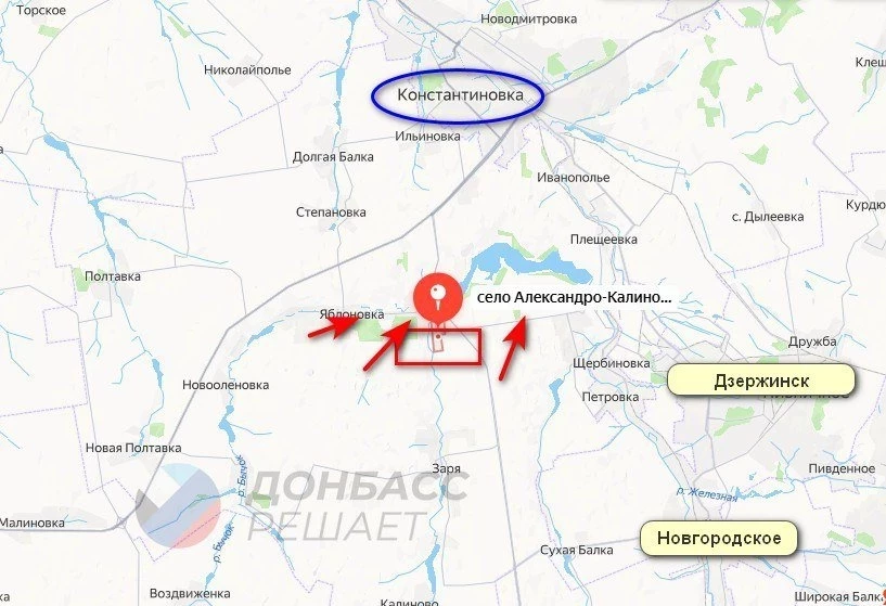 Под Константиновкой ВС РФ выбили противника из Александро-Калиново, отразив несколько контратак вэсэушников. В селе идет зачистка, в соседней Яблоновке продолжаются бои, сообщает военкор Юрий Котенок.