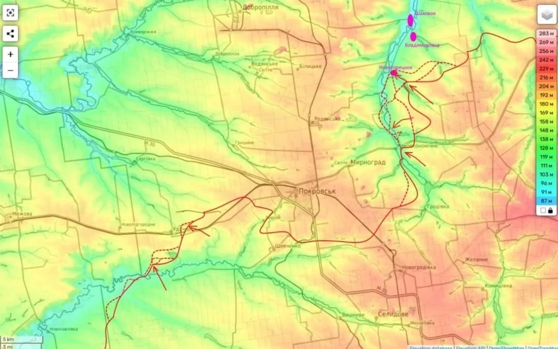 На Покровском направлении российские бойцы с востока очень быстро и успешно охватывают Покровскую группировку противника, где командование ВС РФ, как предполагает Подоляка, попытается применить впервые тактическое решение - занятие крупной городской агломерации без лобового штурма и, соответственно, получить ею удастся относительно целой.