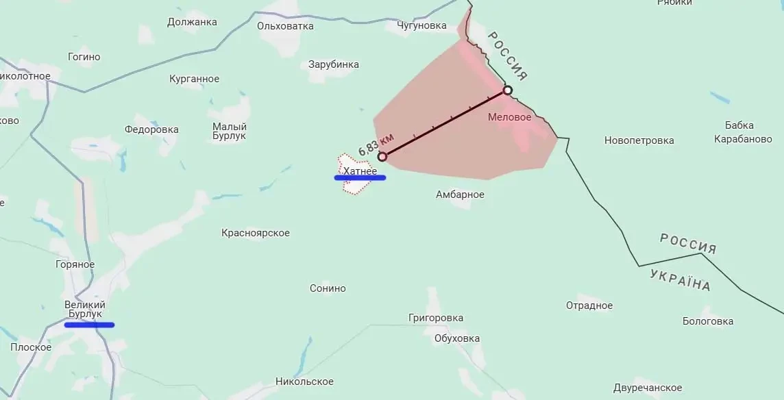 От Хатного до Великого Бурлука около 13 км. При этом к пгт наши войска подступают и с южного направления - со стороны Двуречной и Западного.