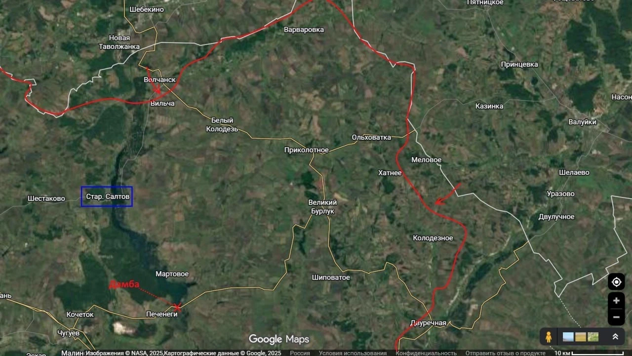 Аналогичные удары наносятся по дамбе в районе Старого Салтова. Комплексное разрушение этих объектов способно полностью перерезать снабжение противника на данном направлении.