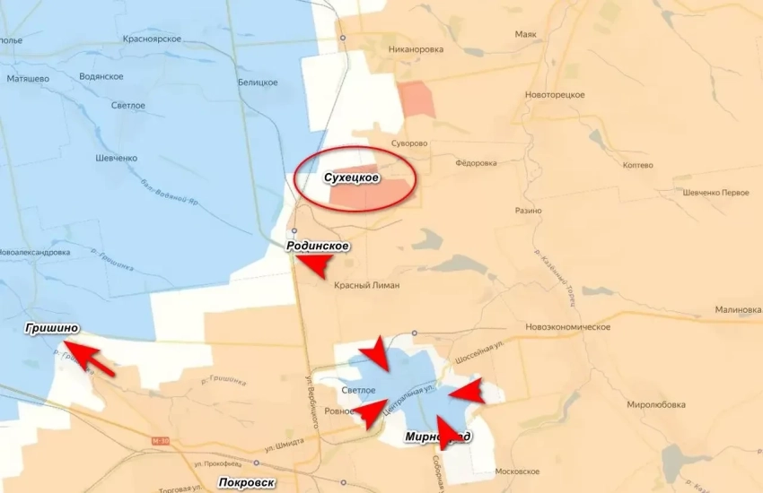 Российские войска вернули контроль над Сухецким в районе так называемого Добропольского выступа на Покровском направлении. Группировка войск «Центр» начала возращение своих позиций, потерянных в ходе контрнаступления ВСУ. Об этом сообщают российские ресурсы.
