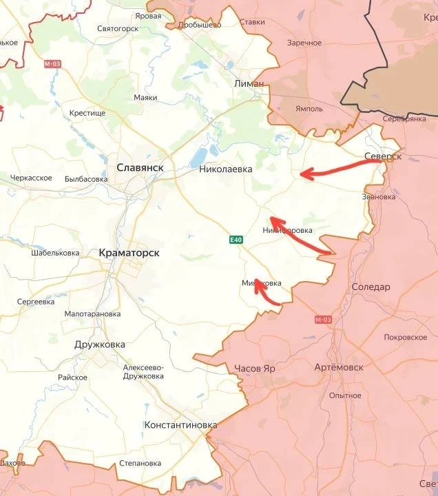 На Северском направлении ВС РФ успешно форсировали р. Северский Донец. Продолжается штурм Закотного. С восточной стороны Северска российские войска выровняли линию фронта, форсировали р. Бахмутка. Идут бои вдоль ж/д.