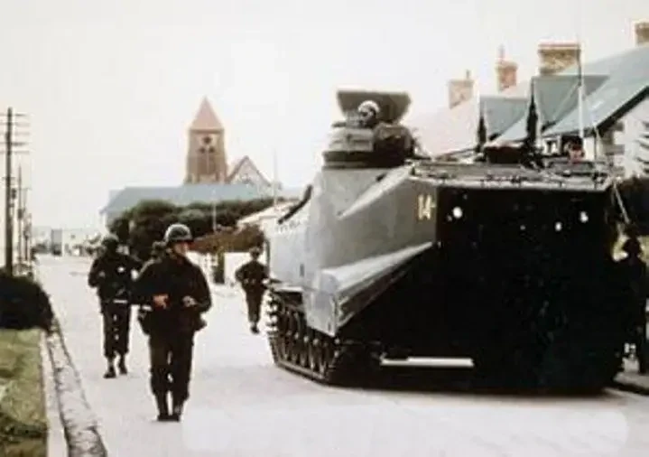 Аргентинские плавающие БТРы на улицах Порт-Стэнли