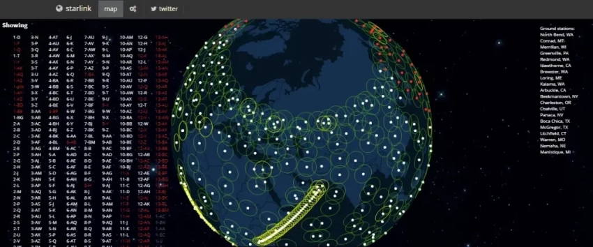 Предполагаемая зона покрытия спутников Starlink