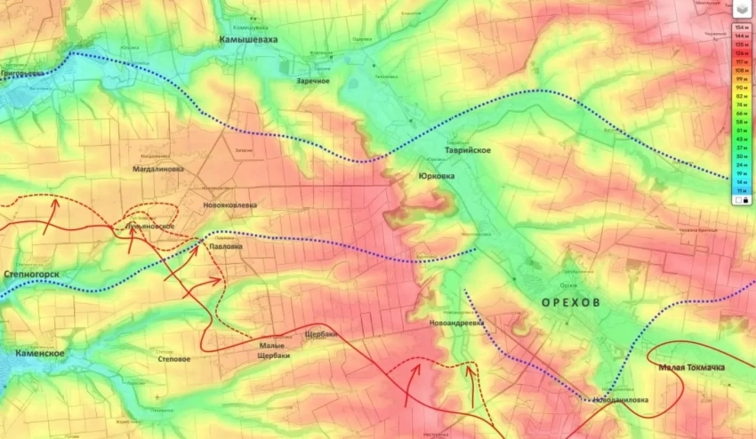 По информации блогера, российские подразделения, продвигающиеся в направлении Орехова, ведут атаки на позиции противника в районе села Павловка и одновременно приближаются к Новояковлевке. Также, как сообщил Подоляка, под контроль бойцов группировки «Днепр» перешло село Лукьяновское, а освобождение Приморского находится на завершающей стадии. По его оценке, такие действия позволяют российским войскам вклиниваться в оборону противника и обходить ореховскую группировку ВСУ с флангов.