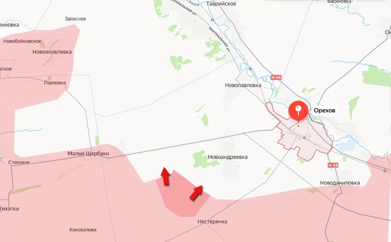 Напомним, что северо-западнее Орехова российские штурмовые группы подошли к населённому пункту Запасное, что в 8 км от автомобильной дороги Орехов-Запорожье. Такое расстояние позволяет создать значительные проблемы для противника, использующего эту дорогу (Н-08) для снабжения Ореховского гарнизона, пишет "Военное обозрение".