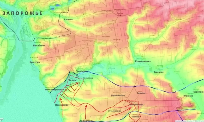 2. Продвижение к южным окраинам Запорожья, до которых после взятия Речного осталось около 12 километров.