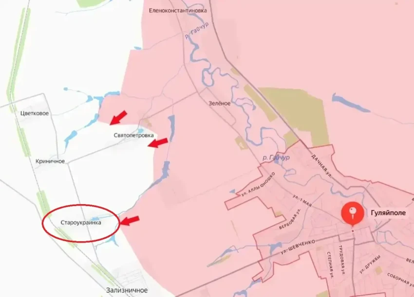 Прорыв обороны ВСУ западнее Гуляйполя: ВС РФ освободили село Староукраинка
