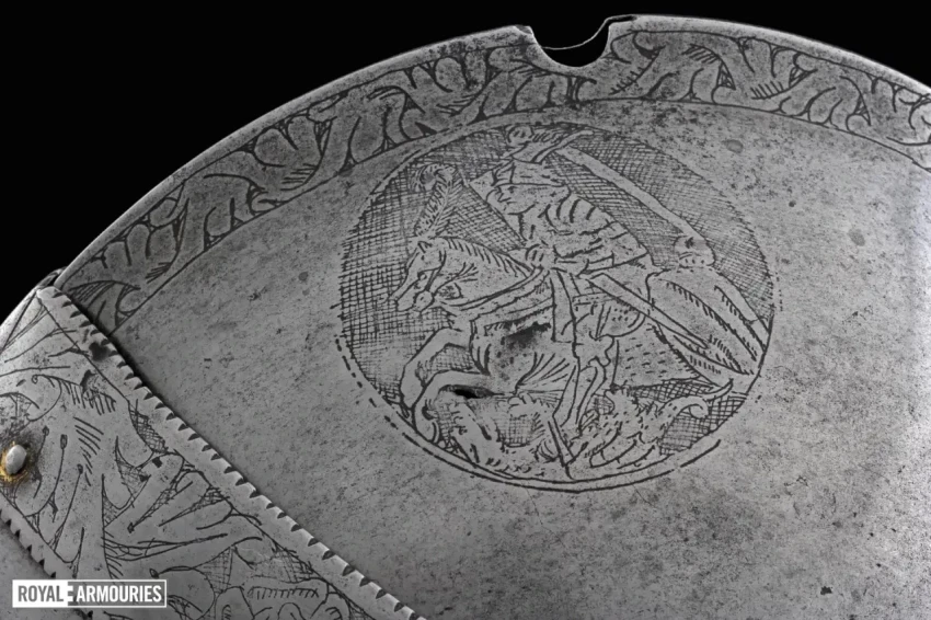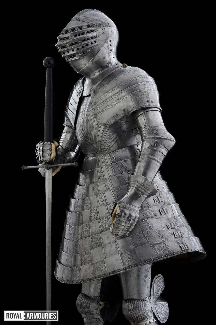 Впрочем, все эти исторические события ценны для нас, поскольку стали причиной появления двух очень интересных турнирных доспехов, которые были изготовлены в Англии для короля Генриха VIII специально для турниров на «Поле Золотой Парчи», а находятся они сегодня в Королевском арсенале в Лидсе.