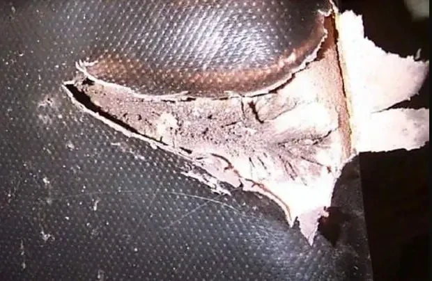 Один из примеров заброневого действия кумулятивной струи. Кумулятивный боеприпас (предположительно граната от РПГ) попал в борт танка «Абрамс» в Ираке. Кумулятивная струя пробила борт машины, прошла через спинку сидения наводчика и зацепила его бронежилет в районе спины.
