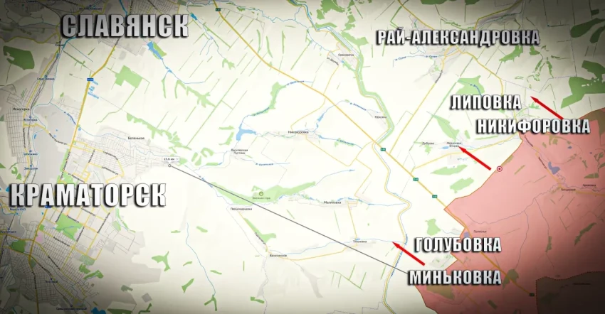 Взятие Липовки и бои за Вторую Федоровку откроют нашим войскам дорогу на Рай-Александровку. Этот населенный пункт – ключ к водораздельному хребту по реке Сухая. Если посмотреть на карту, становится очевидно: выход на эти высоты – это приговор для гарнизонов ВСУ в Калениках и Кривой Луке. До Славянска останется каких-то 10 км по прямой.