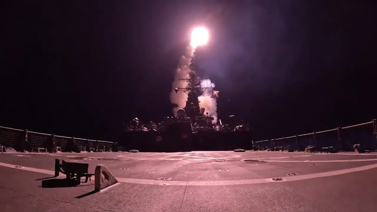 Пуск ракеты Tomahawk с борта американского корабля