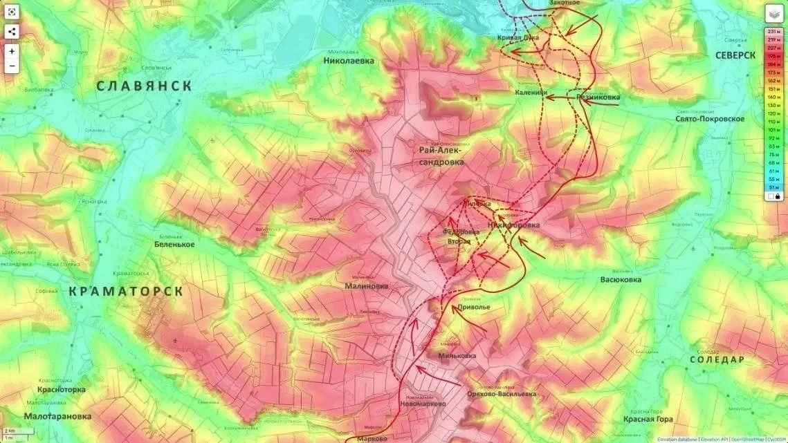 Он отмечает, что в околовоенных блогах противника всё чаще звучат предупреждения о сложном положении в этом районе и о необходимости переброски резервов. Из этого делается вывод, что российская активность как в районе самой Константиновки, так и на подступах к Славянско-Краматорской агломерации постепенно усиливается, хотя резких оперативных сдвигов здесь пока нет.