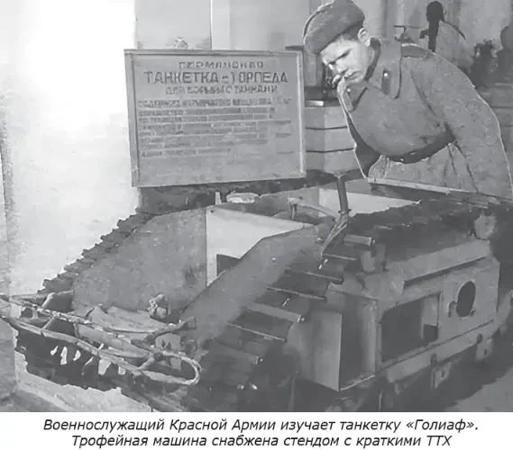 Советские военные специалисты быстро выявили уязвимые стороны «Голиафов» и научили личный состав Красной Армии эффективно бороться с этим боевым техническим средством врага.