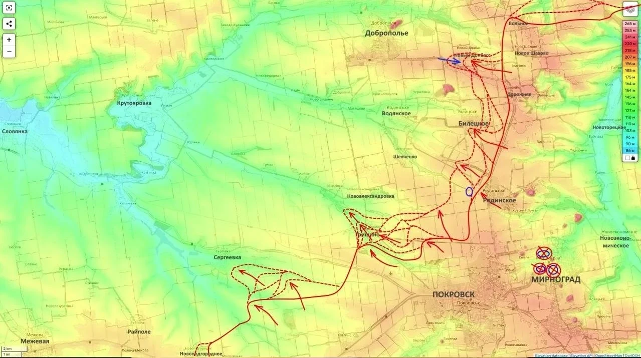 Пока передовые группы ведут бои в застройке, другие части методично перерезают логистические маршруты ВСУ. Наступление к юго-западу от Доброполья развивается по принципу «клещей»: